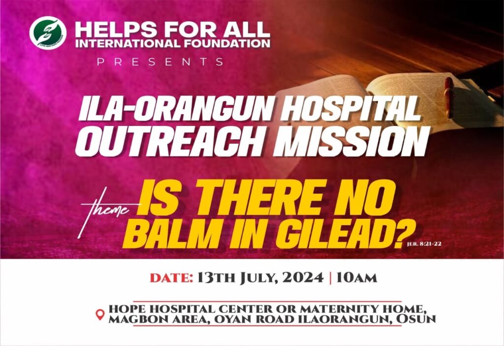 Hospital Outreach Mission at Cottage Hospital, Ede, Osun State Helps For All Hospital Outreach Mission at Cottage Hospital, Ede, Osun State Read More »